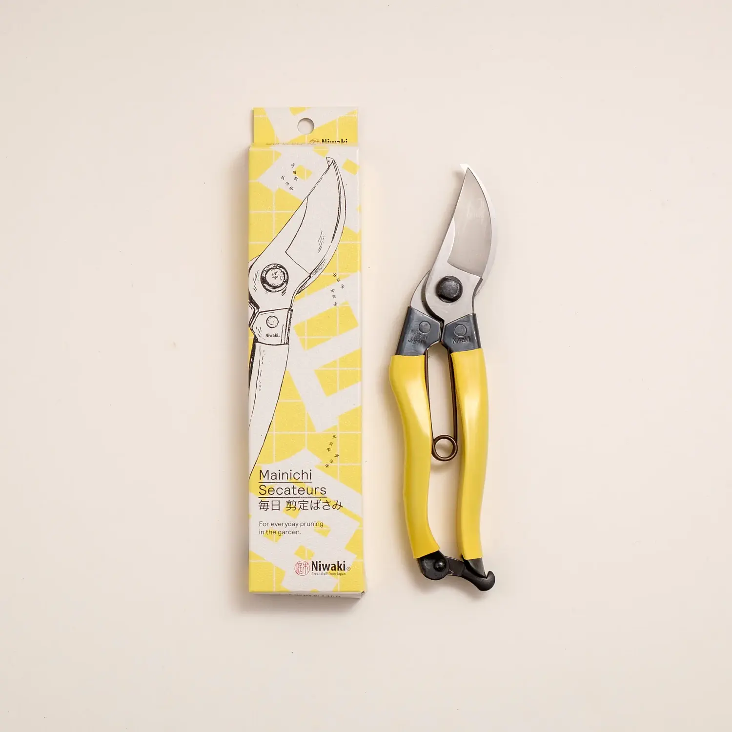 Duży, solidny zatrzask na dole zapewnia szybkie działanie i jest łatwy w użyciu, nawet w przypadku zimnych, mokrych dłoni lub zabłoconych rękawiczek. Sprężyna jest dobrze zabezpieczona i nigdy przypadkowo nie wyskakuje. Tak jak wszystkie japońskie sekatory, sekator mainichi ma prostą konstrukcję i bezpośrednie działanie, co zapewnia bardzo czyste i wydajne cięcie.
